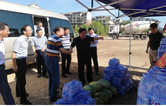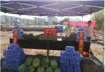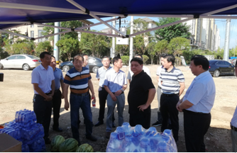 烈日下的八一大橋項目現(xiàn)場一片繁忙景象,工人們有的在支模、有的在焊接鋼筋、有的在澆筑砼,一切都井然有序,忙而不亂。屯溪區(qū)區(qū)委書記江善良一行一到現(xiàn)場,就將一件件防暑降溫慰問品遞到在施工的工人們手中,并囑咐在高溫下施工的操作人員要多注意休息、及時補充水分和營養(yǎng),按項目部要求合理安排工作時間,避免中午高溫時間段施工,同時要求項目部積極做好防暑降溫工作,保障施工一線工人的生命安全。充分體現(xiàn)了屯溪區(qū)委、區(qū)政府等領(lǐng)導(dǎo)對我集團公司的一片深情厚誼和關(guān)懷。