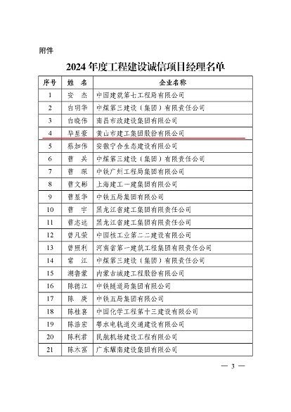 近日,中國(guó)施工企業(yè)管理協(xié)會(huì)公布了2024年度第一批工程建設(shè)企業(yè)信用等級(jí)評(píng)價(jià)結(jié)果的通知、工程建設(shè)誠(chéng)信企業(yè)家評(píng)價(jià)結(jié)果、工程建設(shè)誠(chéng)信項(xiàng)目經(jīng)理名單。黃山建工集團(tuán)順利通過(guò)AAA級(jí)信用企業(yè)的年審,繼續(xù)保持AAA信用等級(jí)的殊榮。黃山建工集團(tuán)總經(jīng)理葉金發(fā)獲評(píng)誠(chéng)信企業(yè)家,項(xiàng)目經(jīng)理畢星豪獲評(píng)誠(chéng)信項(xiàng)目經(jīng)理。此次榮譽(yù)是對(duì)黃山建工集團(tuán)在工程建設(shè)領(lǐng)域的綜合實(shí)力和誠(chéng)信經(jīng)營(yíng)的高度認(rèn)可。